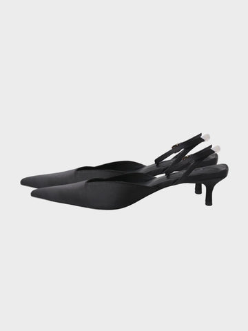 The Dominique Kitten Heel | Black Satin