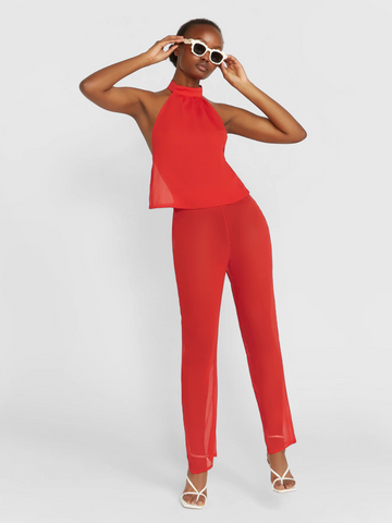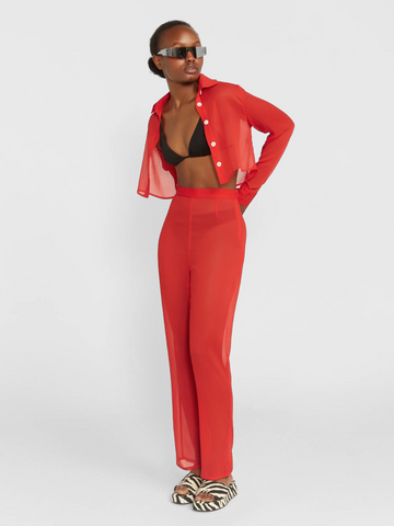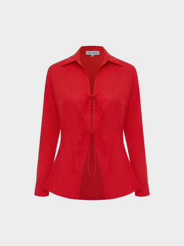 The Soulmate Tie Front Shirt in Strawberry Red by First Colours, crafted from GOTS certified...