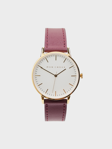 WATCH STRAP - BURGUNDY VEGAN LEATHER - GOLD BUCKLE | GRAPE 18MM