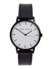 Classic white and black faced watch in black vegan grape leather from cruelty free brand Mon Choux. Made with VEGEA grape waste, rescued from Italian wineries.