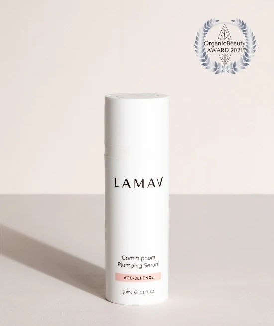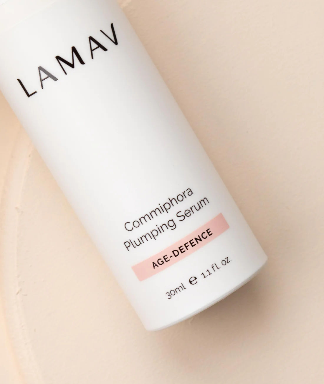 LAMAV's Commiphora Plumping Serum is a potent collagen-boosting serum that helps to reduce and prevent the appearance of fine lines and wrinkles.