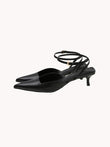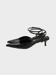 This kitten heel comes in black and black satin.