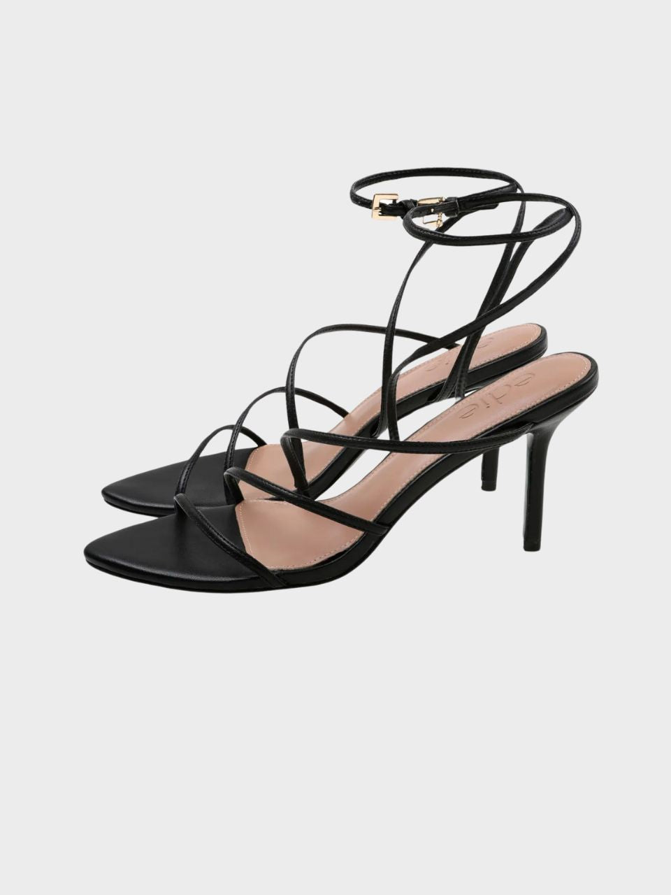 Introducing edie collective's Jill Strappy Heel in black, featuring an 8.5cm heel.