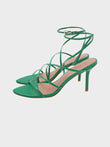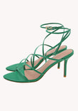Introducing edie collective's Jill Strappy Heel in vibrant green, featuring an 8.5cm heel.