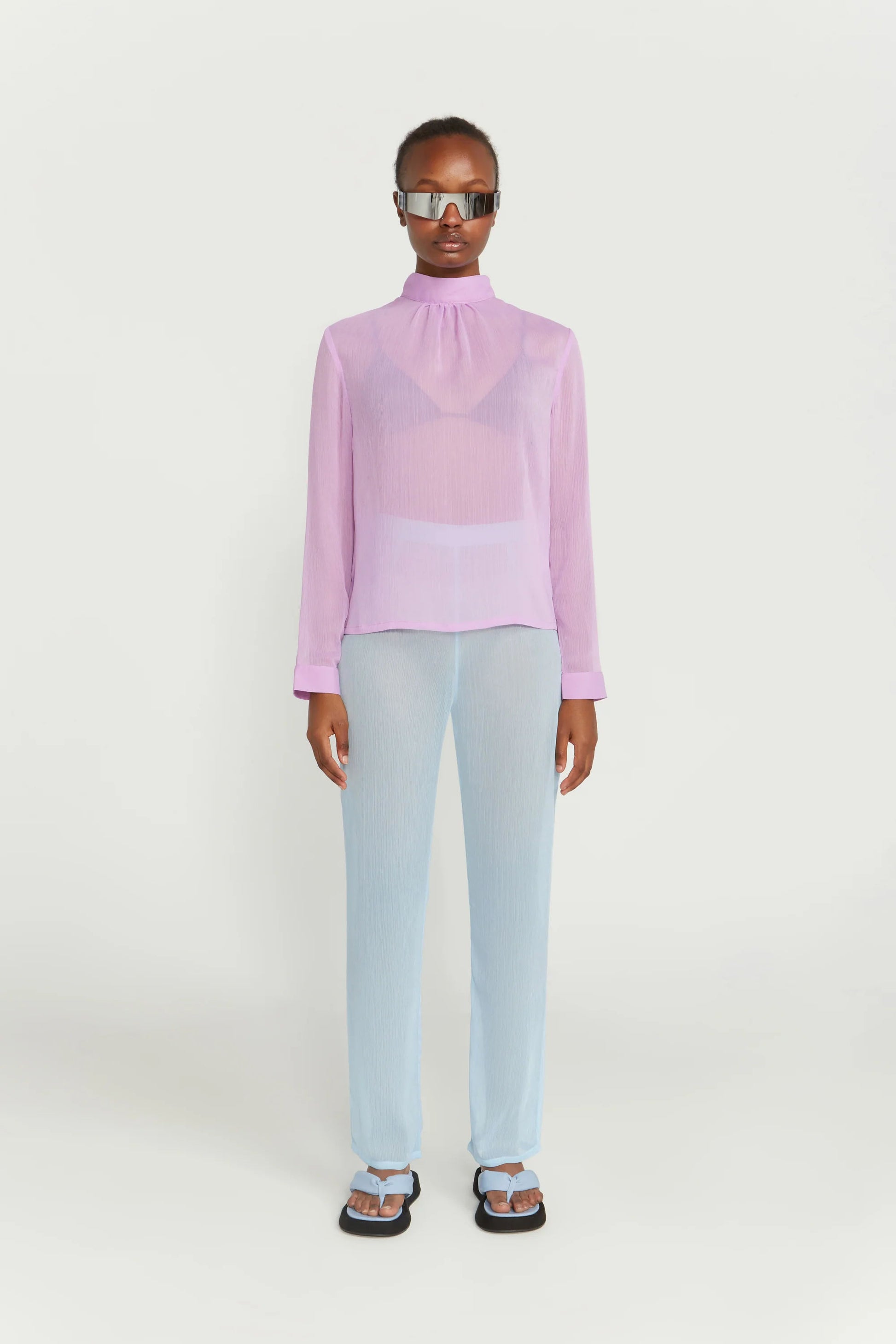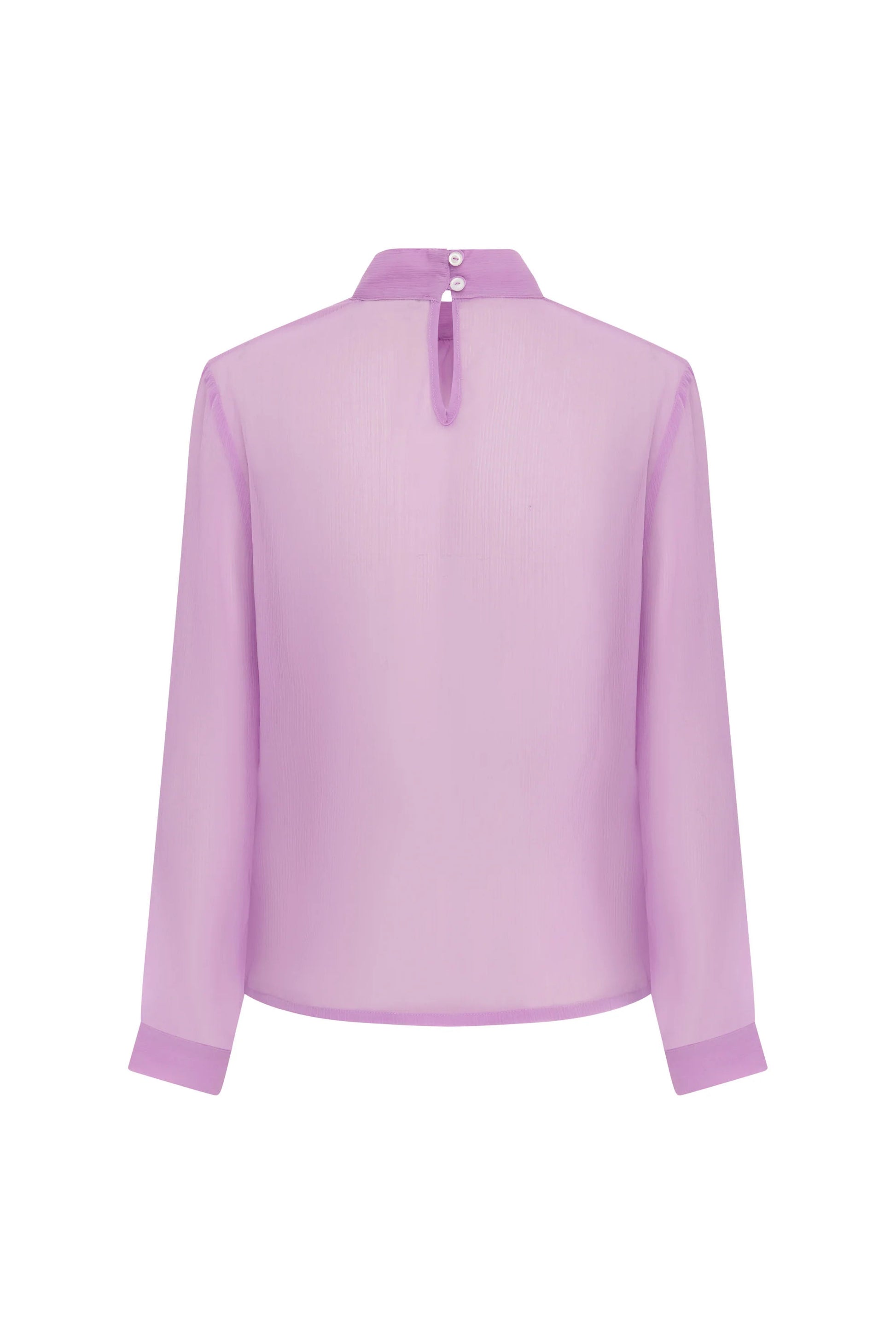 First Colours signature recycled crinkle chiffon peony blouse in grape.