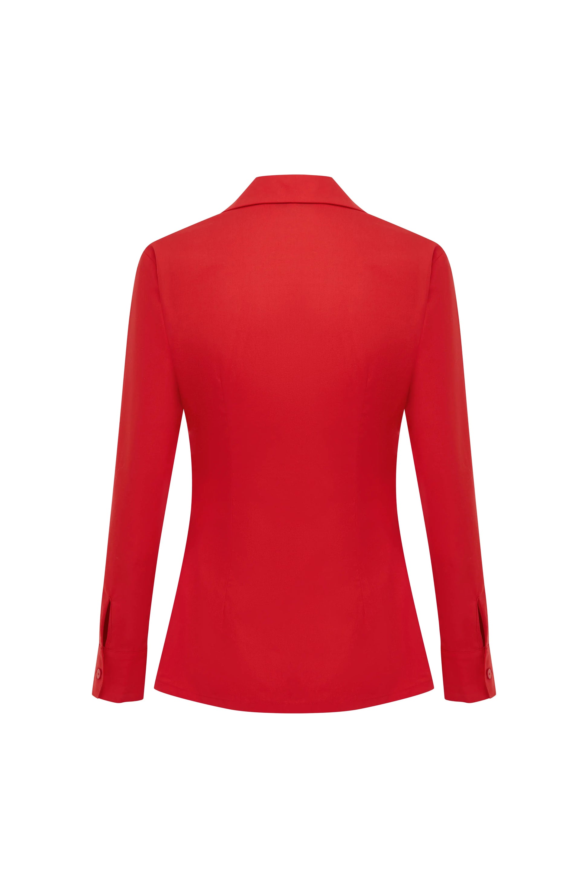 Elegant and feminine with an open-front design, this shirt boasts two tie closures to emphasise your waistline. A subtle touch of femininity with a gentle flare at the waistline.
