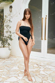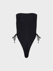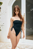 Introducing OneTwenty Swim's Strapless High-Leg Cheeky Swimsuit, a classic design that exudes confidence.