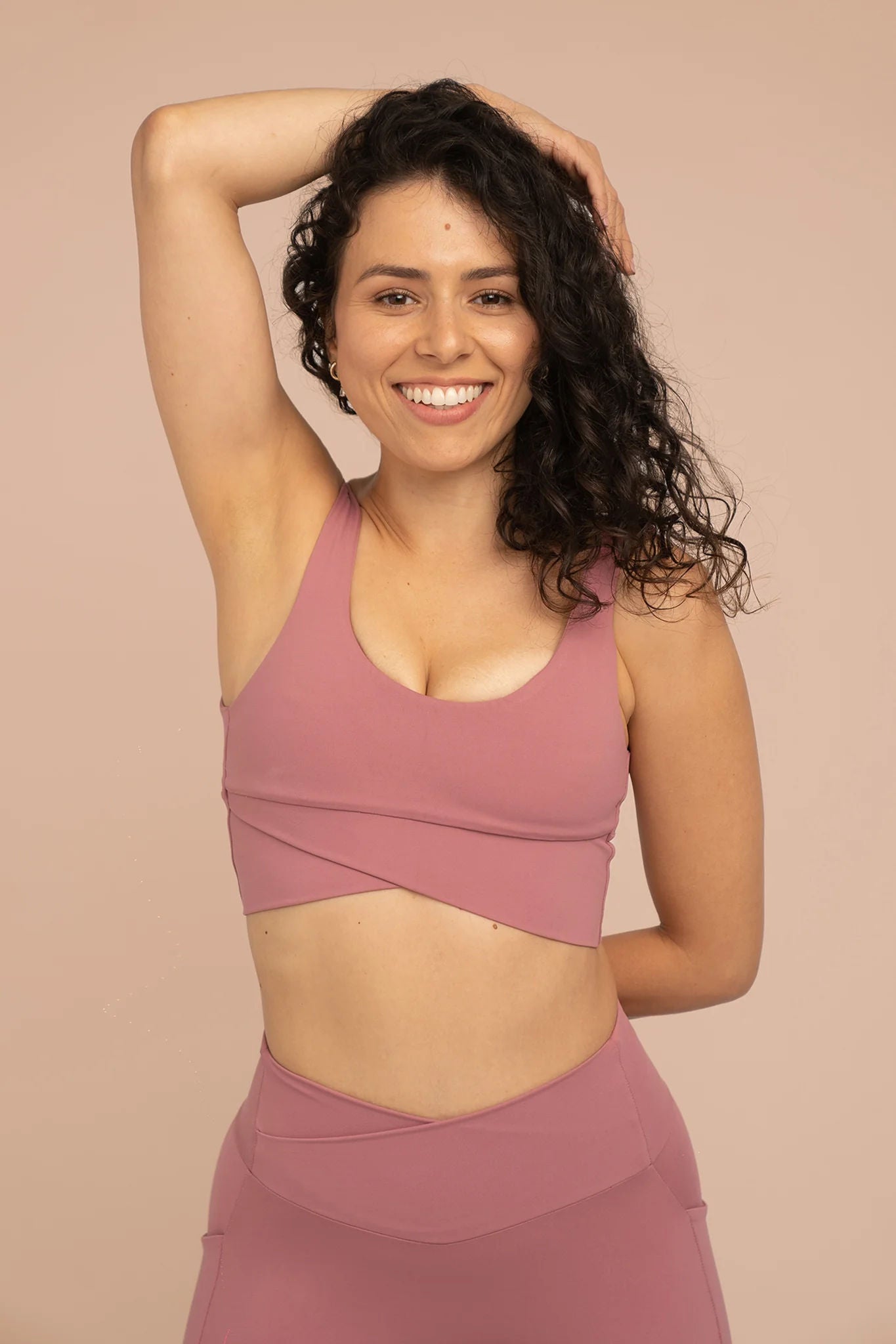 Introducing your ultimate support system: the Ava Bra. Lunae Active's latest bra has a crossover wrapped front and a V-back design, sure to support you through whatever your day has in store.