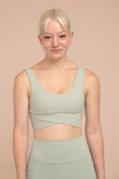 Introducing your ultimate support system: the Ava Bra. Lunae Active's latest bra has a crossover wrapped front and a V-back design, sure to support you through whatever your day has in store.