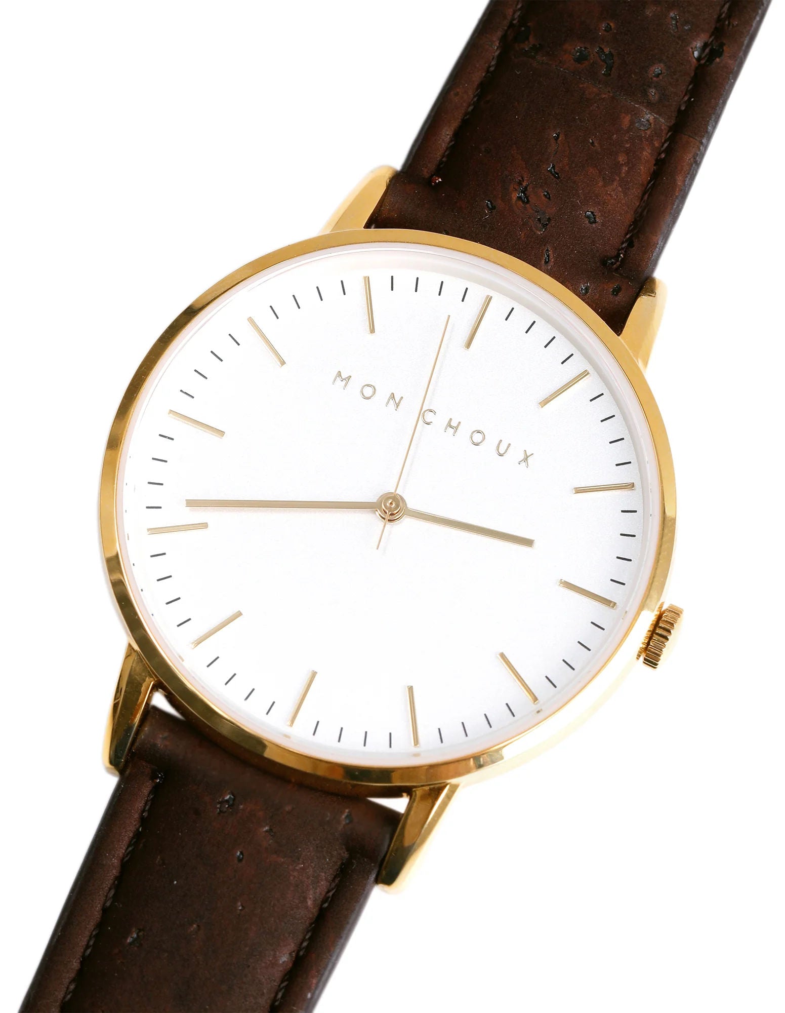 Tailored for both men and women, Mon Choux's Classic gold watch showcases a visually appealing face with subtle illumination and applied hour markers, all encased within a 5ATM water-resistant polished case. Easily interchangeable with Mon Choux's quick-release straps, this watch is meticulously crafted with a focus on quality and durability, culminating in an elegant finish with an anti-scratch sapphire crystal.