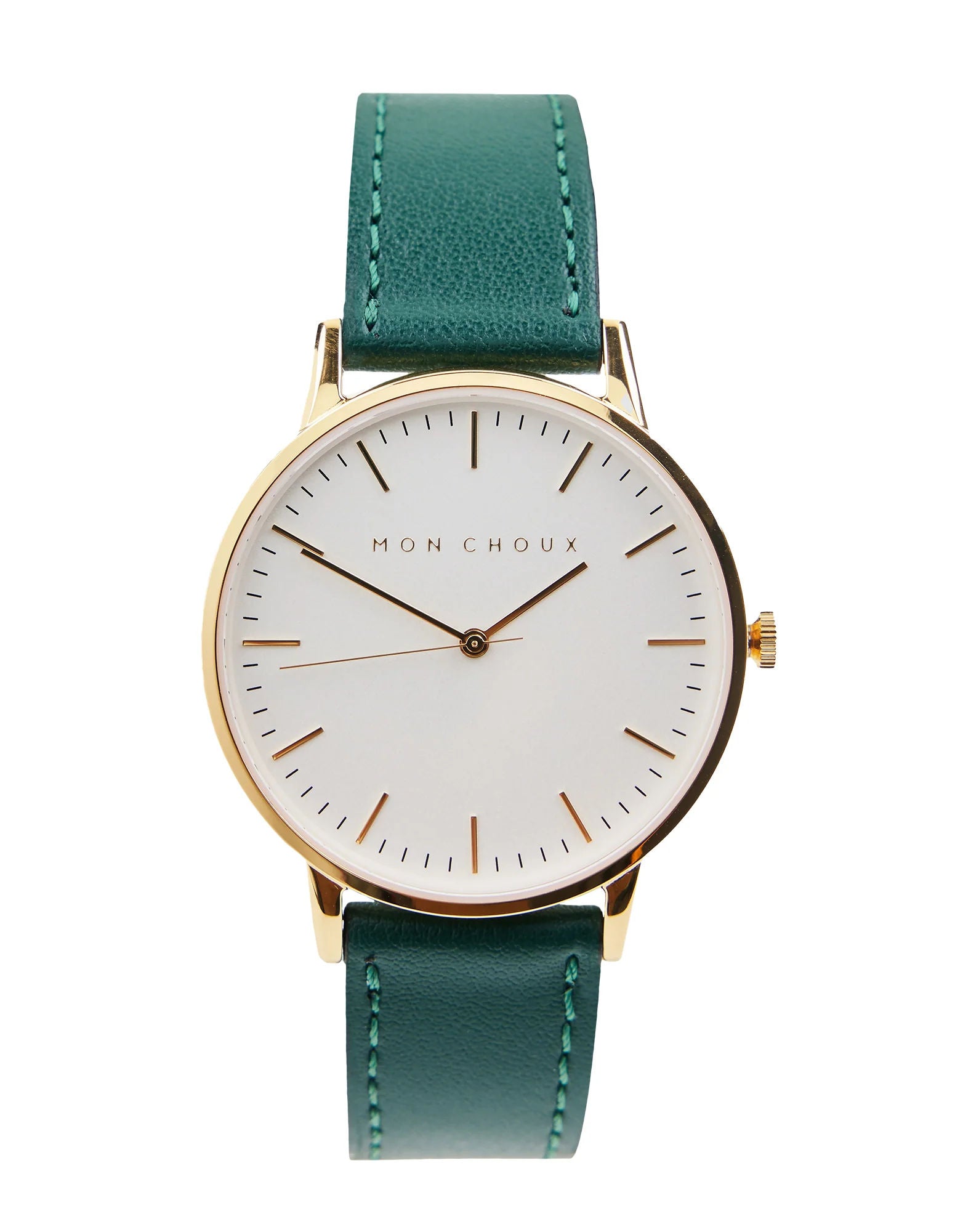 Highlighting Mon Choux's cruelty-free commitment, the watch strap proudly utilizes VEGEA® vegan grape leather—an innovative textile crafted from 80% renewable materials, repurposing waste from the wine-making industry. Elevate your style with a timepiece that reflects luxury, compassion, and sustainability.