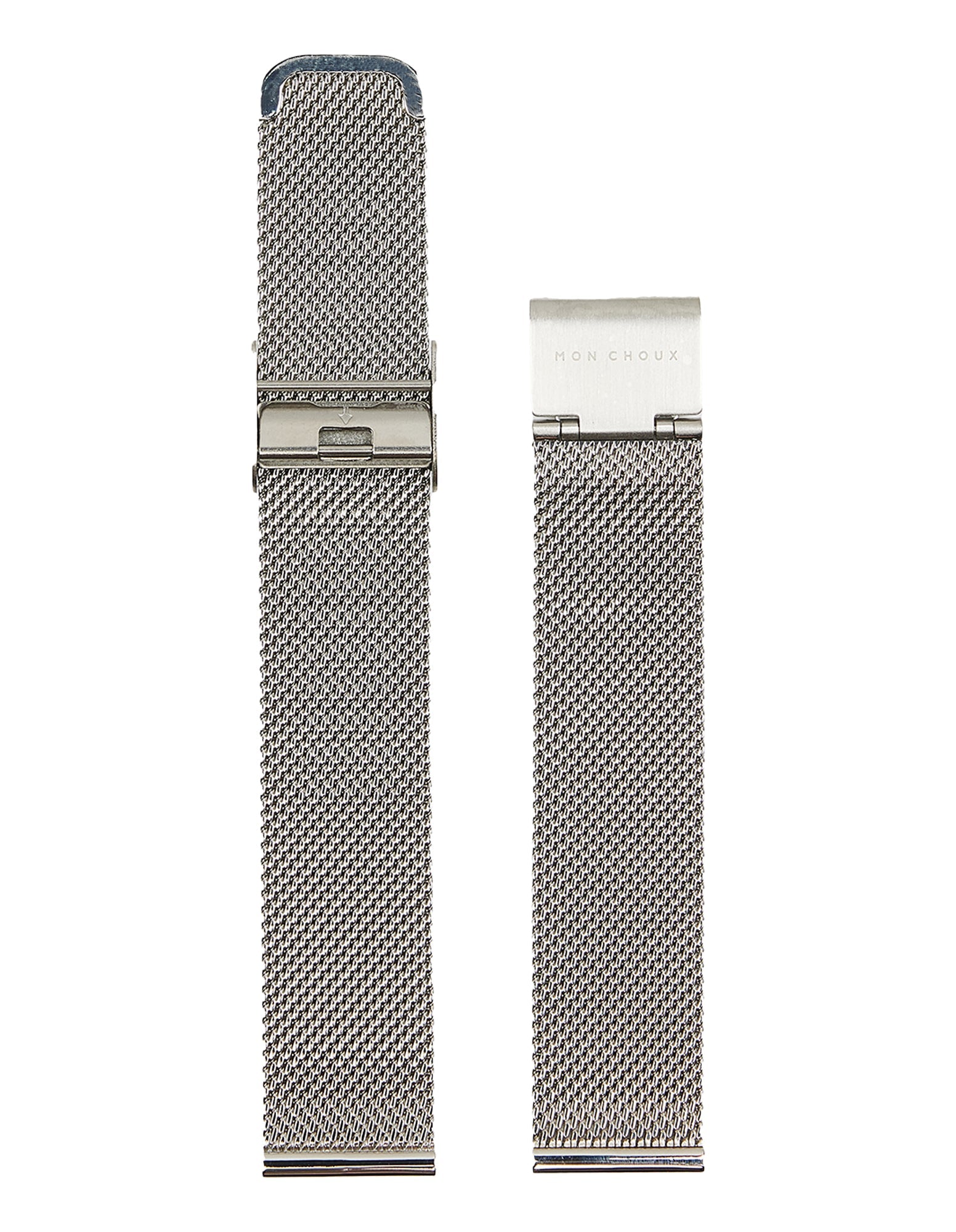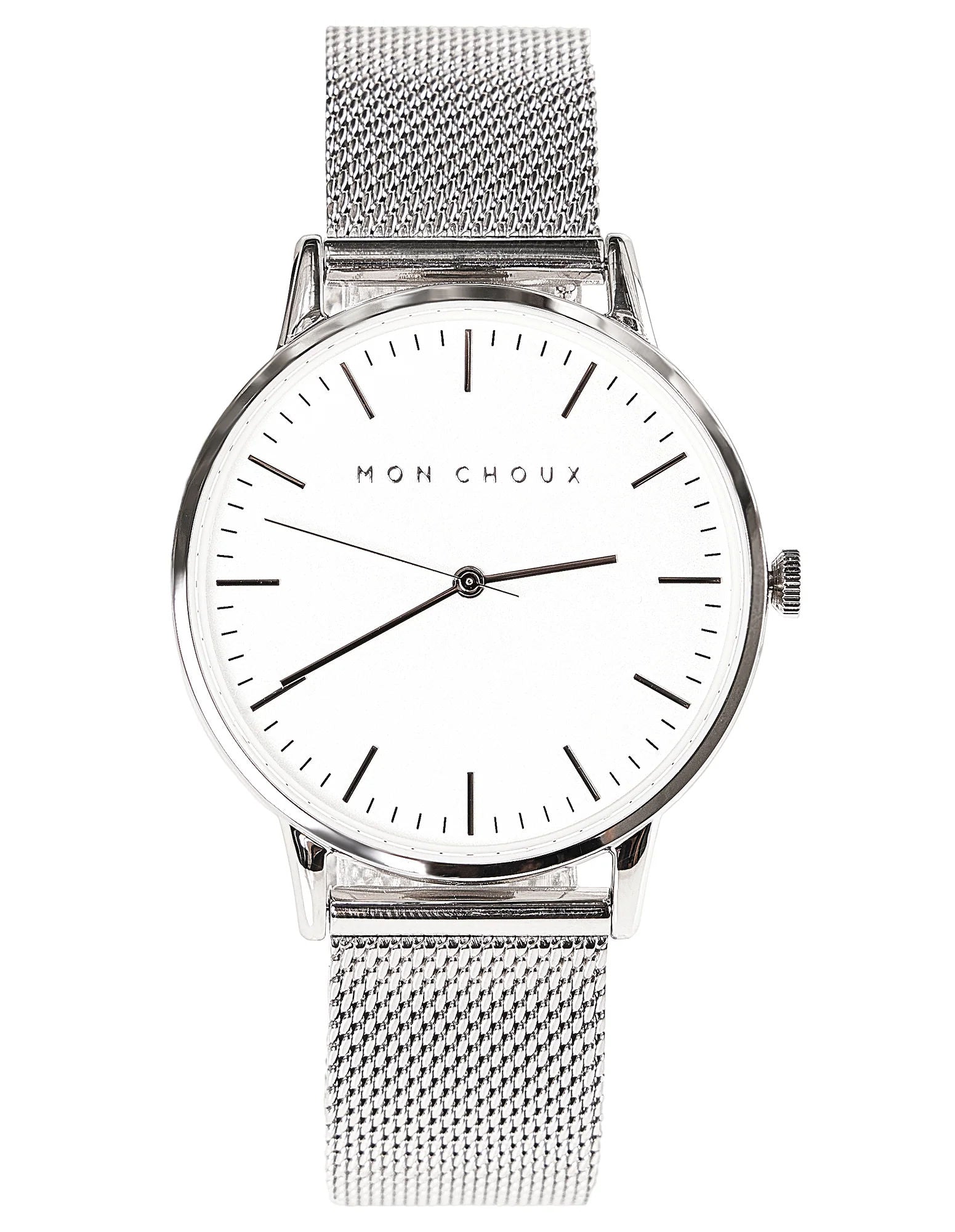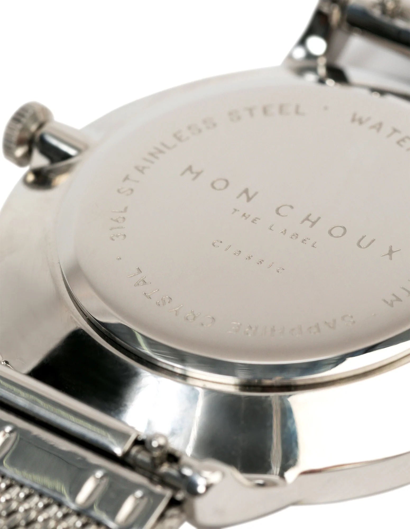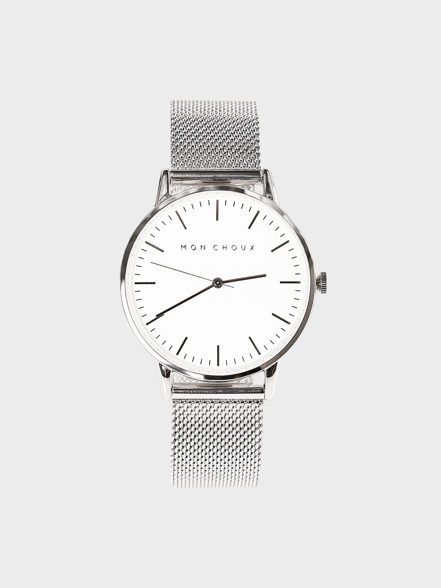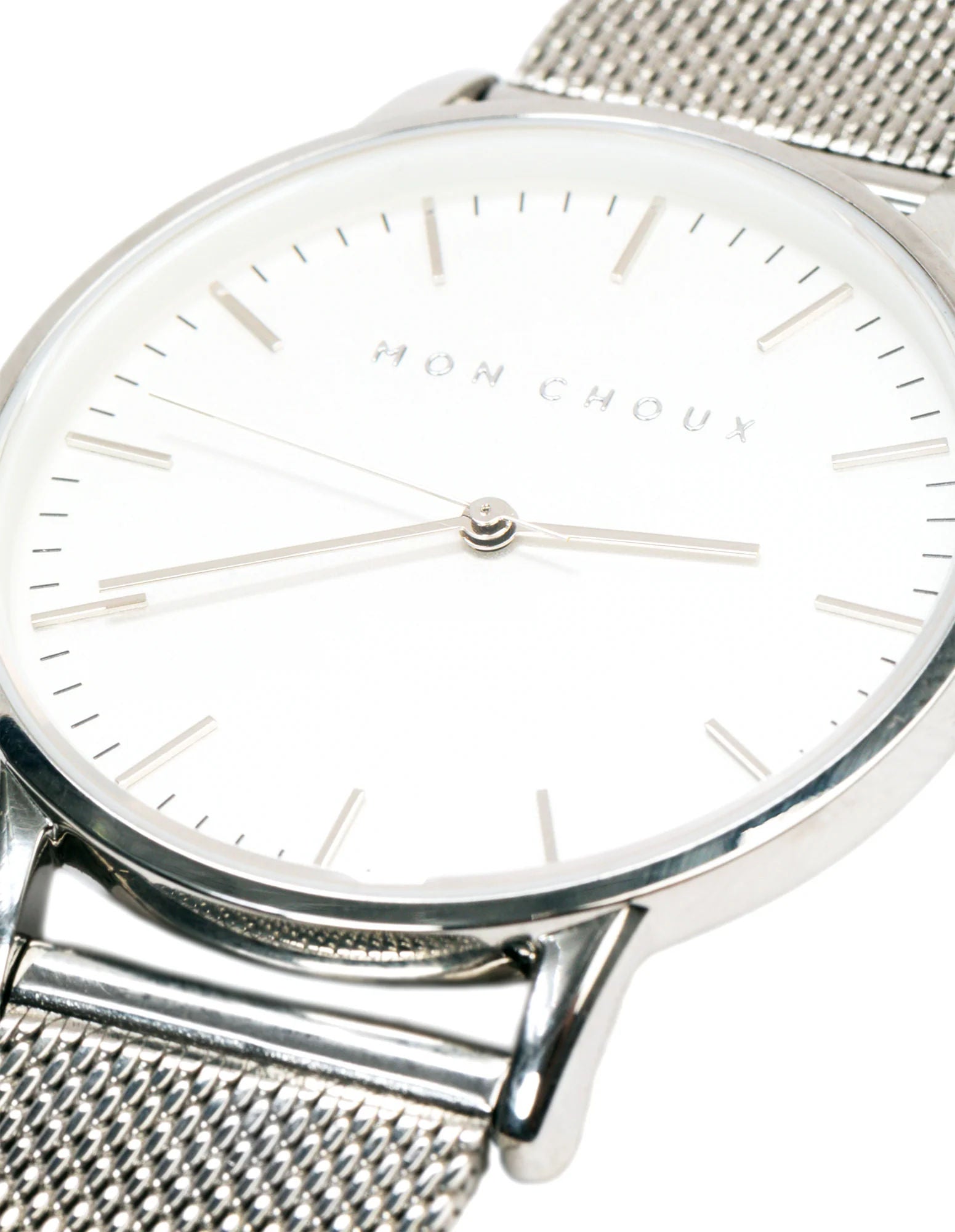 Classic silver watch in mesh from cruelty free brand Mon Choux.