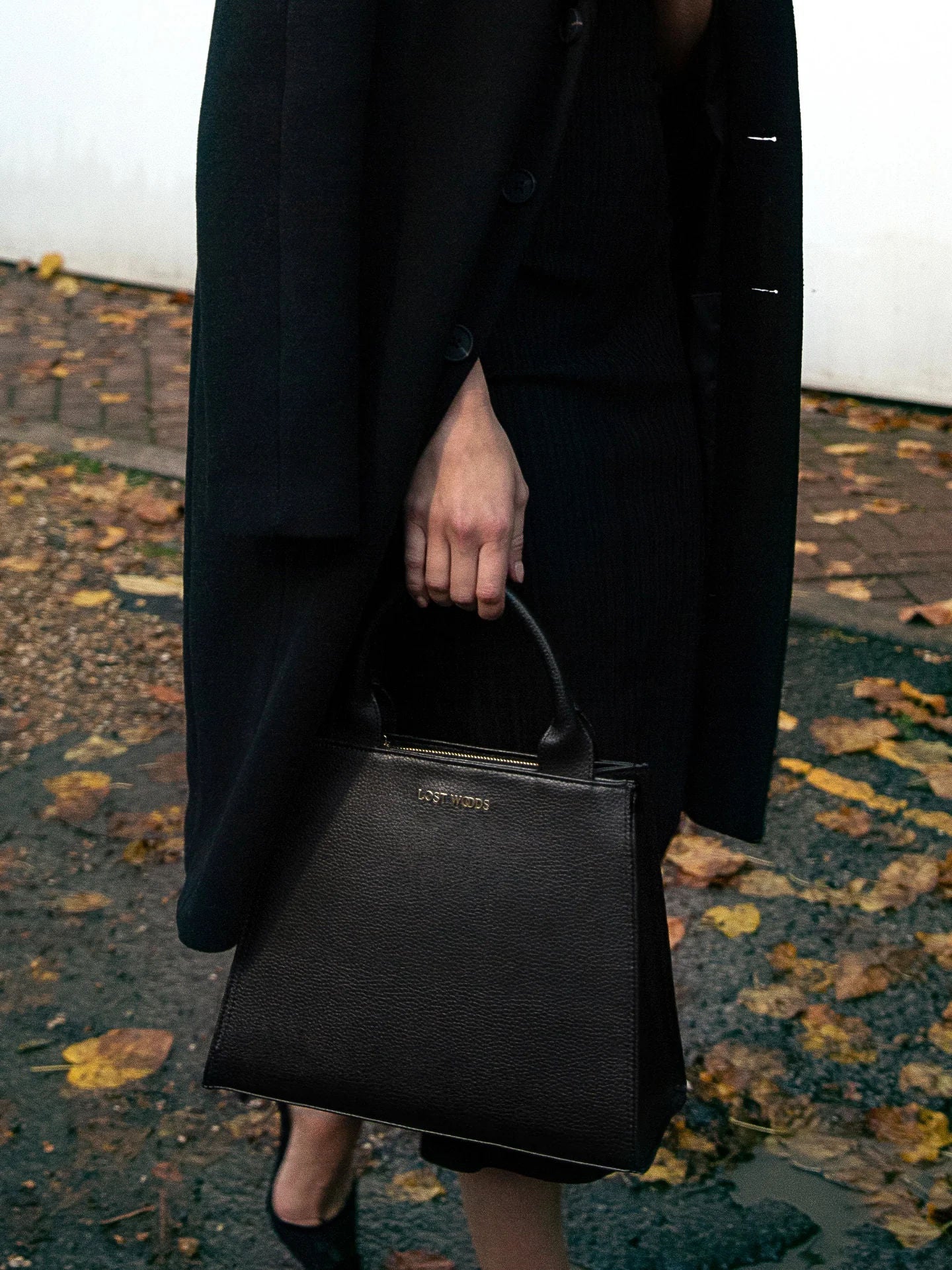 Introducing the Ebony Structured Tote Bag in Black & Gold by Lost Woods.
