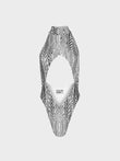 Introducing OneTwenty Swim's uniquely designed sassy twist on an elegant high neck, showcasing sleek cut outs, high leg and a backless, cheeky design.