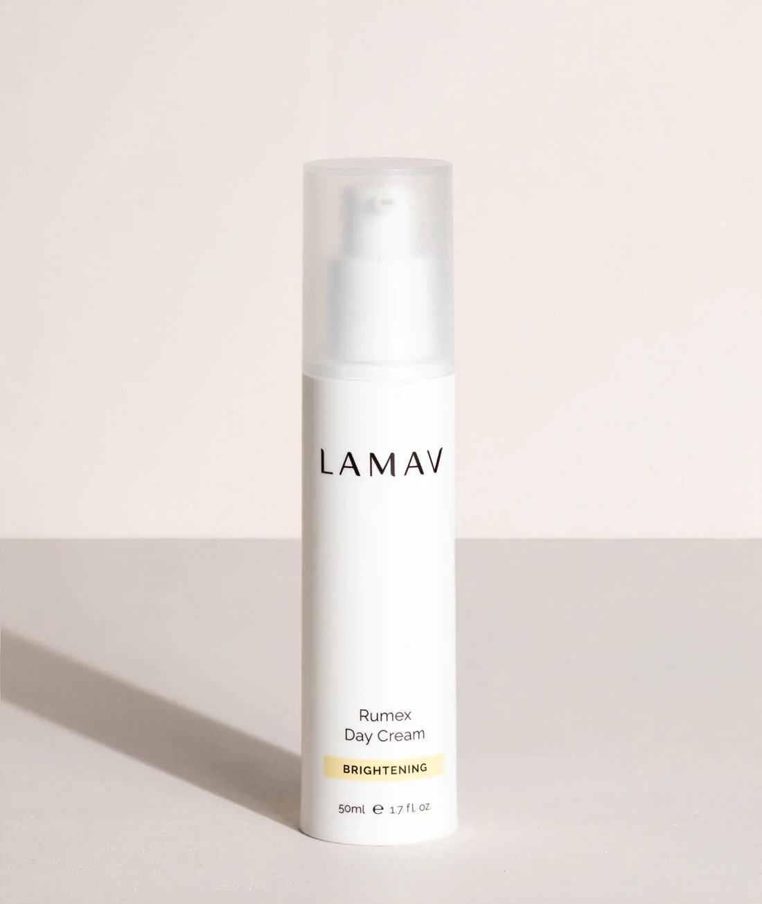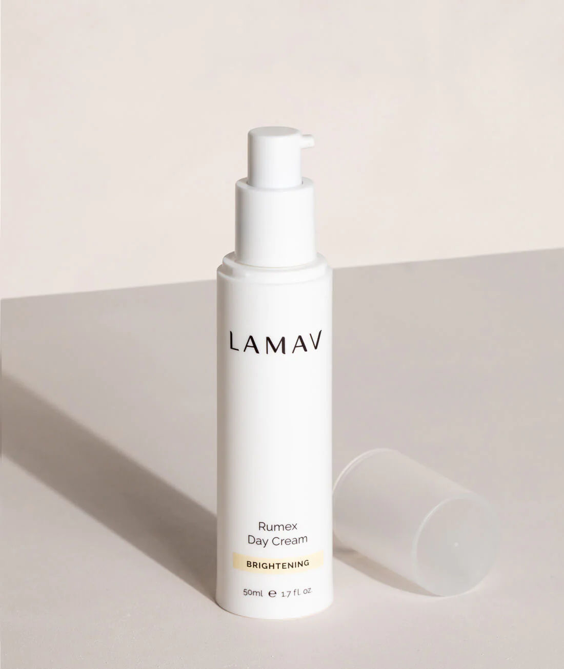 LAMAV's Rumex Day Cream is an advanced lightening cream that works to reduce the appearance of discoloration and pigmentation.