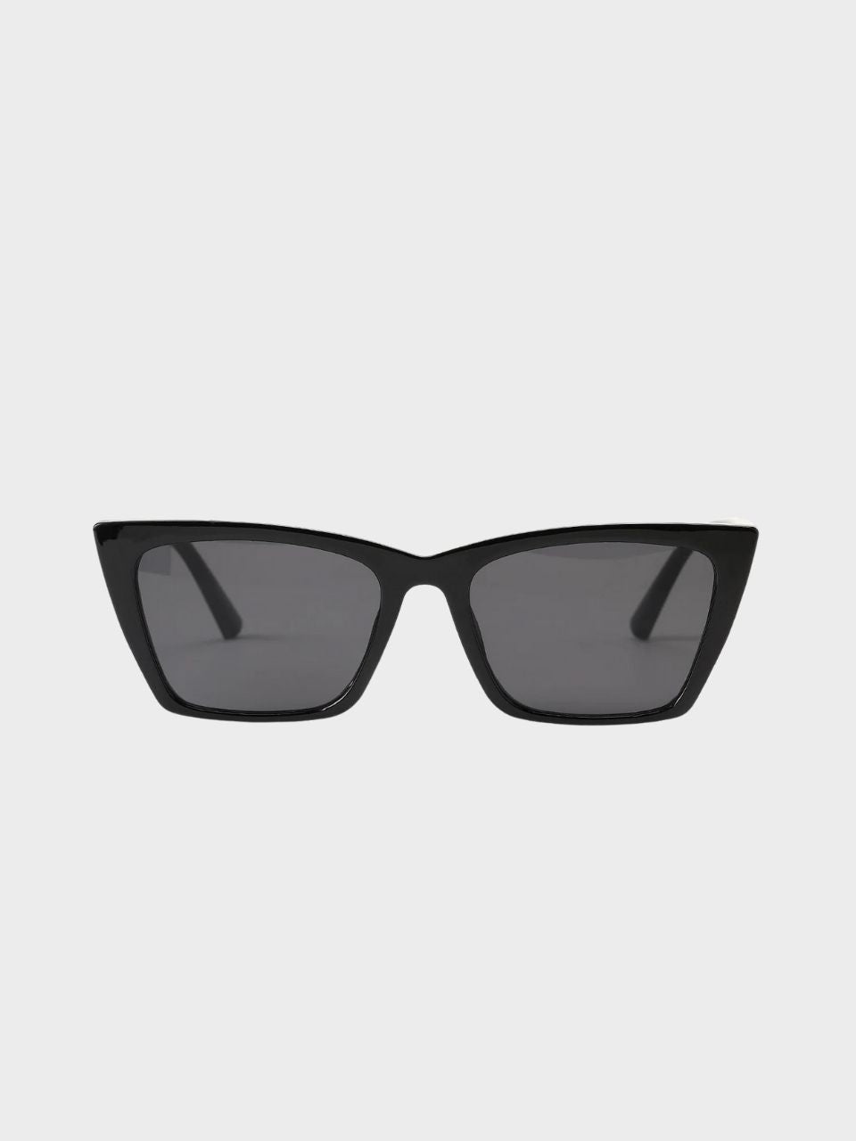 Shield your eyes in style. Made with retro-inspired rectangular frames, THE KIARA makes protecting your eyes as a stylish affair. Featuring cat-eye frames, black detailing, dark tinted lenses.