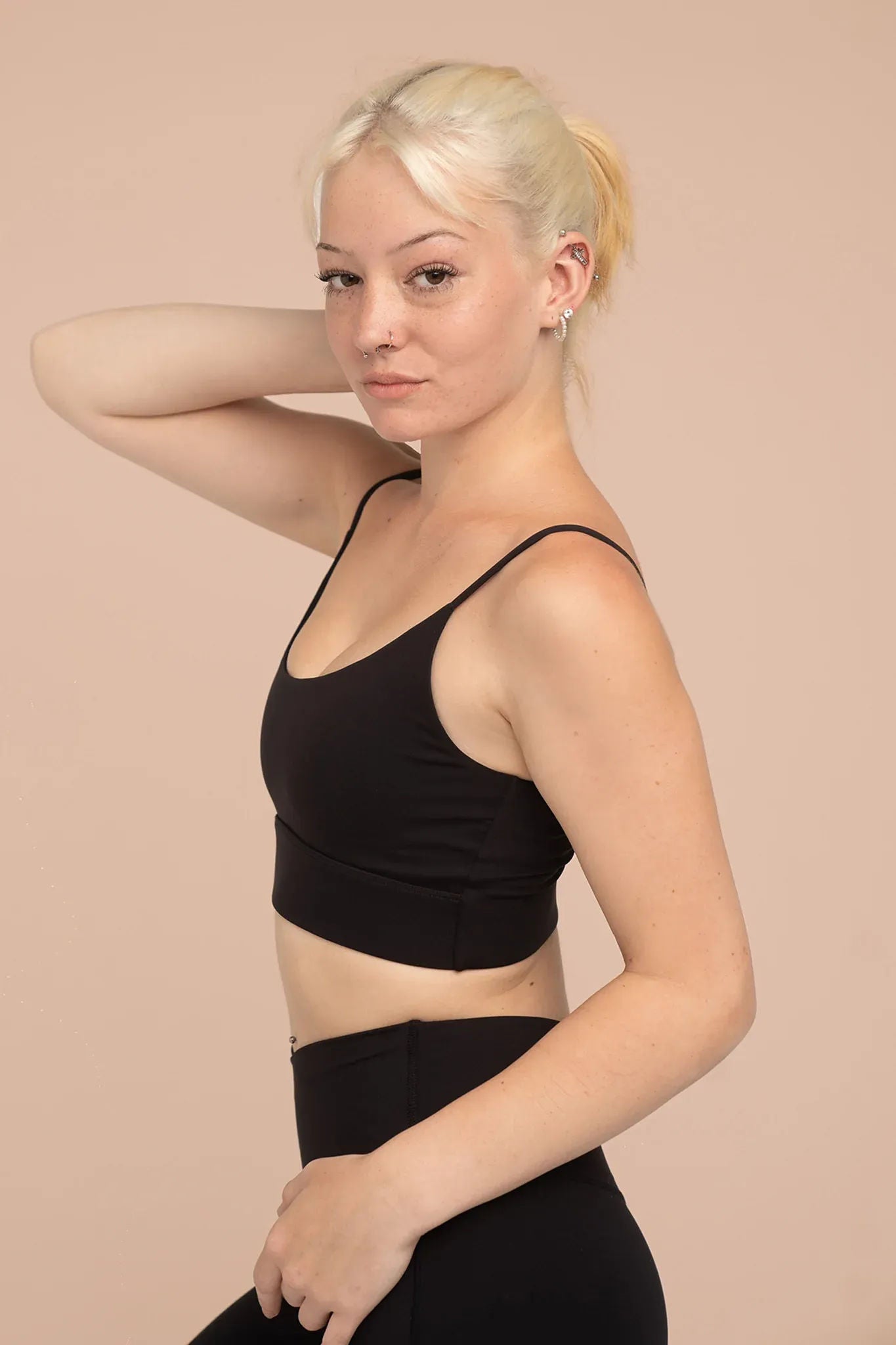 Featuring an open scoop neckline, a low scoop back, and a built-in support band under your bust, the Layla bra is perfect for light to medium-impact workouts like pilates, yoga, weight training, or speed-walking to the gym.